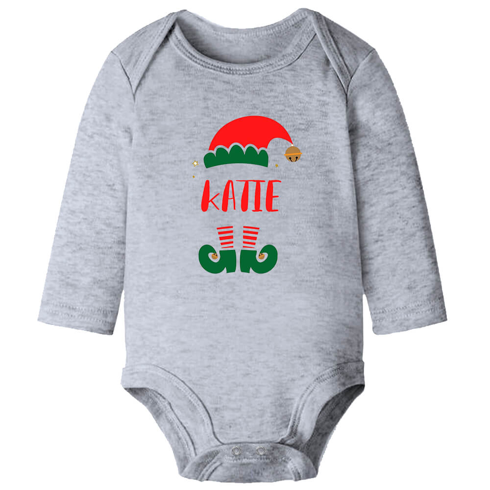 Your family will look festive in our unique and one-of-a-kind “Custom Name Elf” baby vest and t-shirts. Locally printed on demand using high-quality materials, these pieces are perfect for spreading holiday cheer.