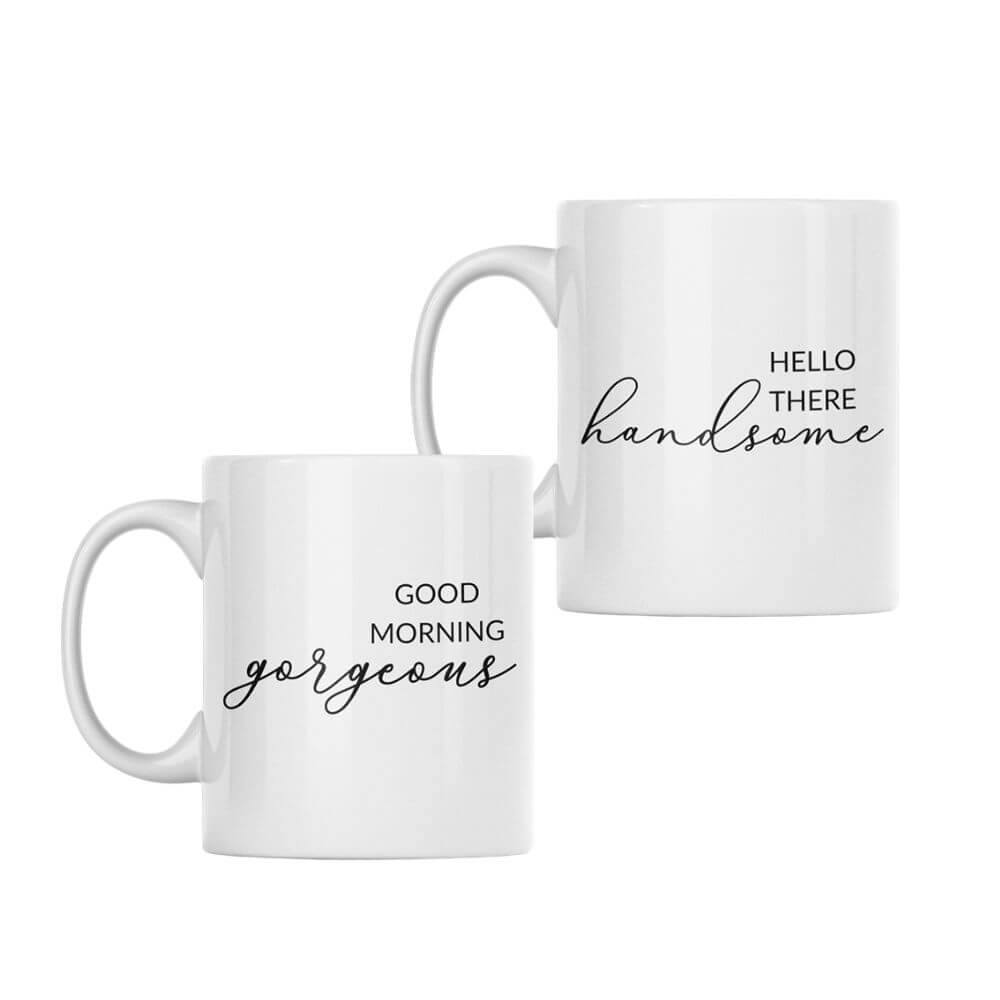 Features the heartfelt slogans “Good Morning Gorgeous” or “Hello There Handsome” in elegant, flowing script, adding a touch of romance and sophistication to your daily routine.