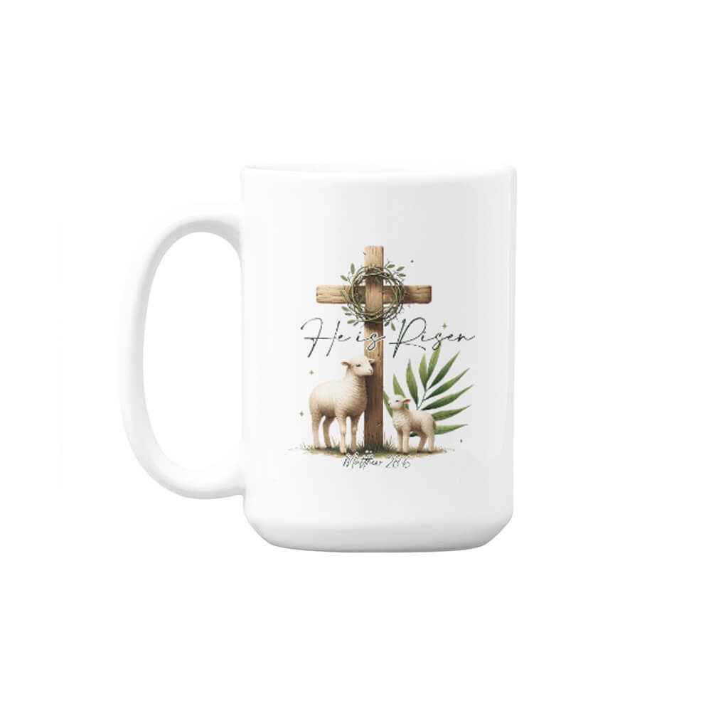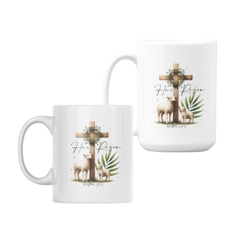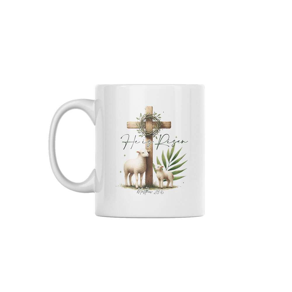 Celebrate the joy of Easter with this beautifully designed “He Is Risen” mug, available in both 330ml and 440ml sizes. Featuring an elegant illustration of a lamb, an ewe, a cross, and a crown of thorns, this mug serves as a daily reminder of faith, hope, and renewal. Perfect for enjoying your favourite hot drinks, it makes a meaningful gift for loved ones or a special addition to your Easter celebrations.