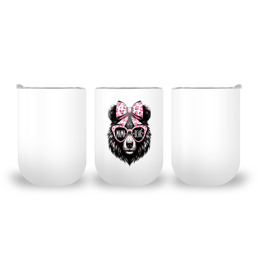The adorable bear illustration with a pink bow and sunglasses makes this tumbler a standout accessory, ideal for showing off mum’s personality.