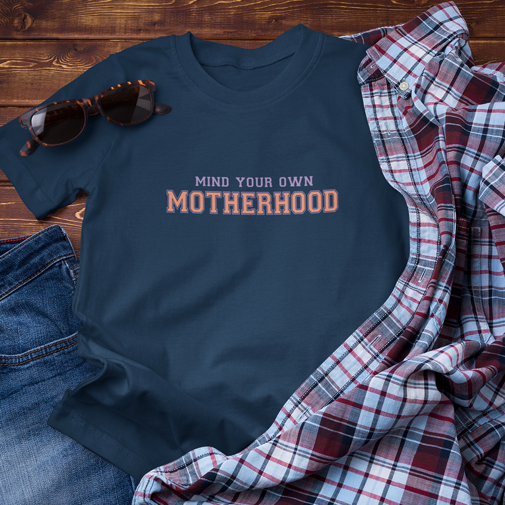 Celebrate motherhood in style with this vibrant “Mind Your Own Motherhood” ladies T-shirt, perfect for Mother’s Day or any day you want to express your personality. Featuring a bold, modern college-style font in bright colours, this T-shirt combines fashion with a powerful message, making it an ideal gift or personal wardrobe staple.